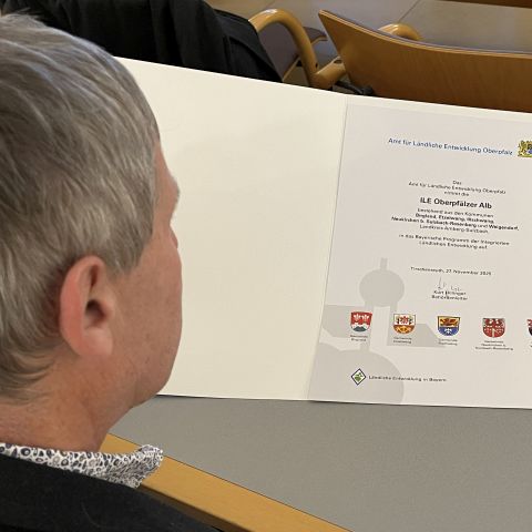 Kurt Hillinger, Leiter des Amts für Ländliche Entwicklung Oberpfalz in Tirschenreuth, bestätigte, dass die ILE Oberpfälzer Jura und ILE Oberpfälzer Alb offiziell in das Bayerische Programm der Integrierten Ländlichen Entwicklung aufgenommen worden sind. Damit stehen den Kommunen Regionalbudgets zur Verfügung, über die Zuschüsse für Kleinprojekte abgerufen werden können. Anschließend überreichte der Behördenleiter neben den Anerkennungsurkunden auch die ersten Förderbescheide in Höhe von 225.000 Euro für die ILE Oberpfälzer Alb sowie für die ILE Oberpfälzer Jura von 17.000 Euro.
